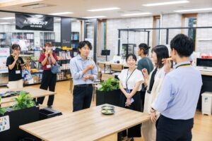 報告会には銀行や役場、入居企業、地域の方々など幅広い参加者が集まり、活発な意見交換も行われました。参加者には、キウイアイスの提供もあり、和やかな雰囲気で地域との交流も深まりました。