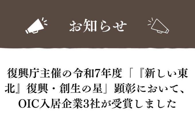 復興庁主催の令和7年度「『新しい東北』復興・創生の星」顕彰において、当施設の入居企業が受賞しました! 本顕彰は、東日本大震災からの...