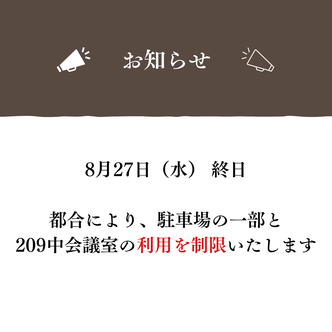 都合により、駐車場の一部と209中会議室の利用を制限いたします。